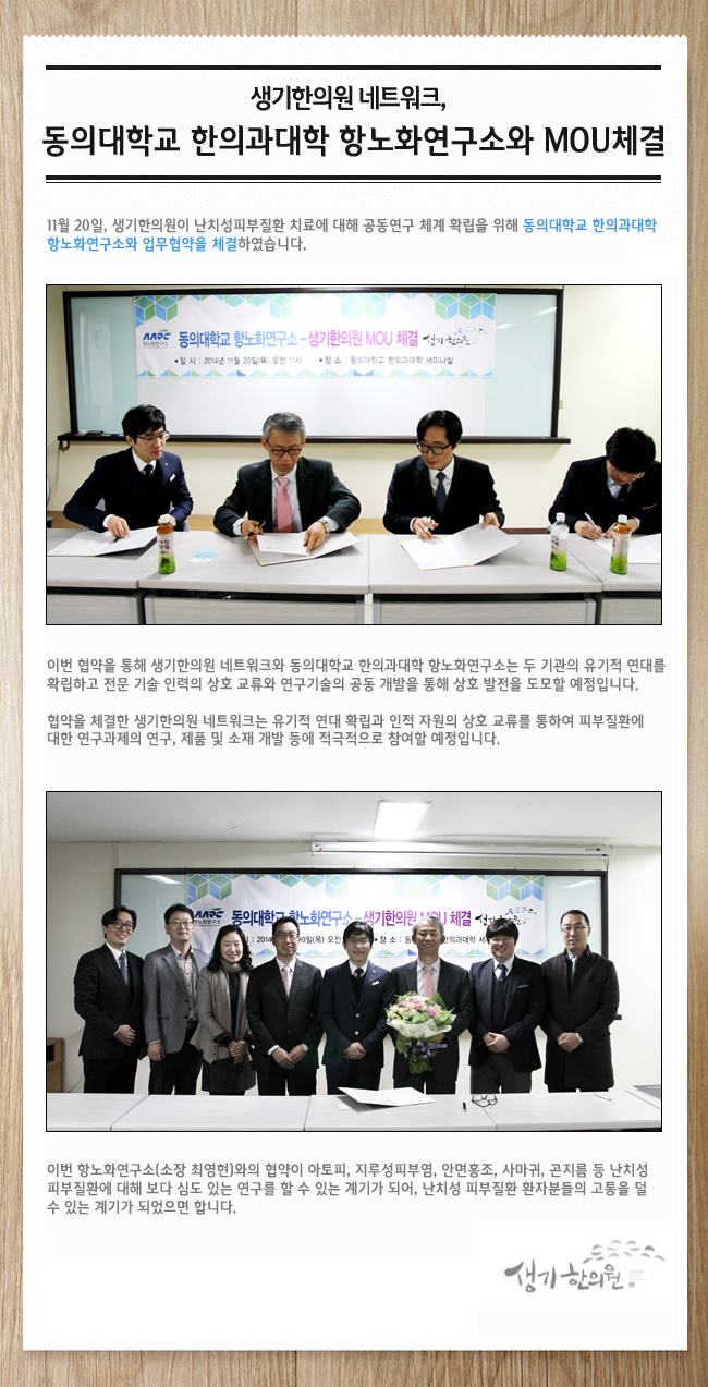 생기한의원 네트워크와 경복대학교 산학협력 협..