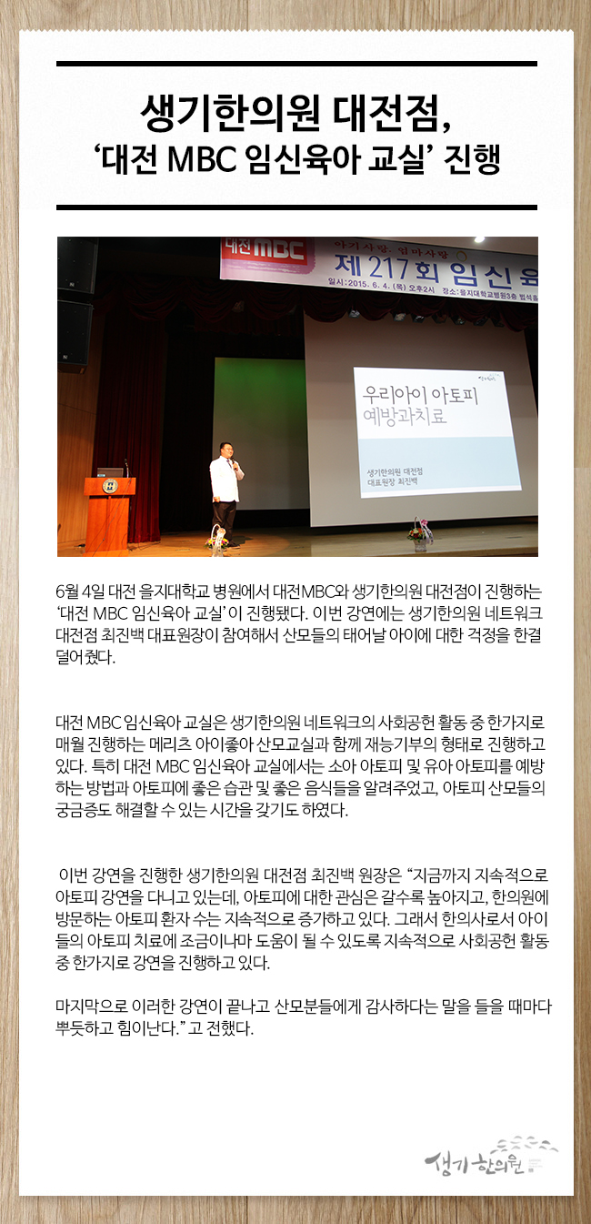 생기한의원 대전점, ‘대전 mbc 임신육아 교실..