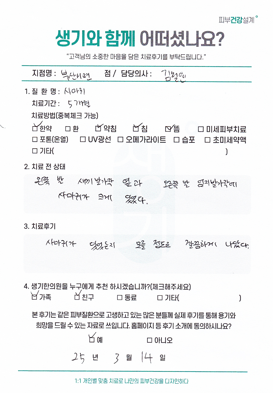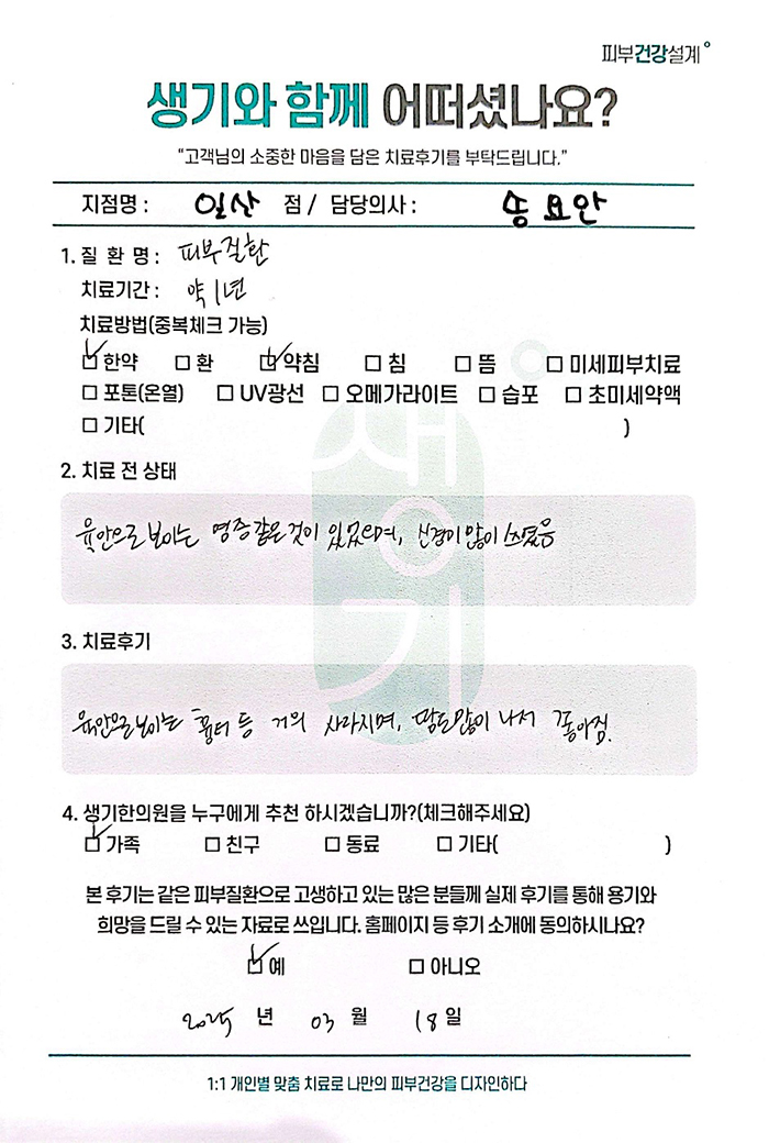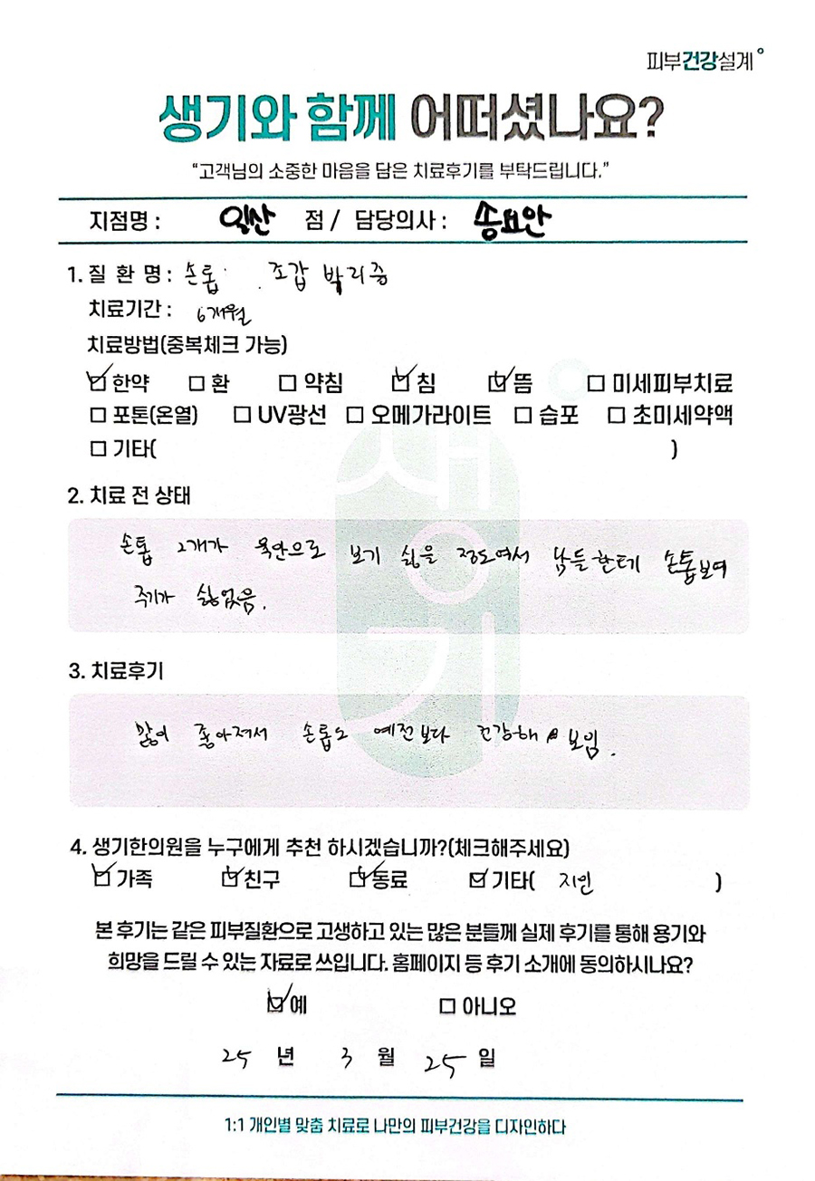 생기한의원과 함께하신 생생한 자필 및 영상 후기를 소개합니다.