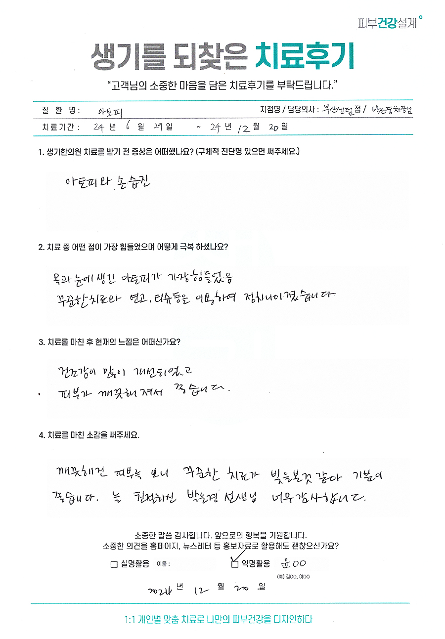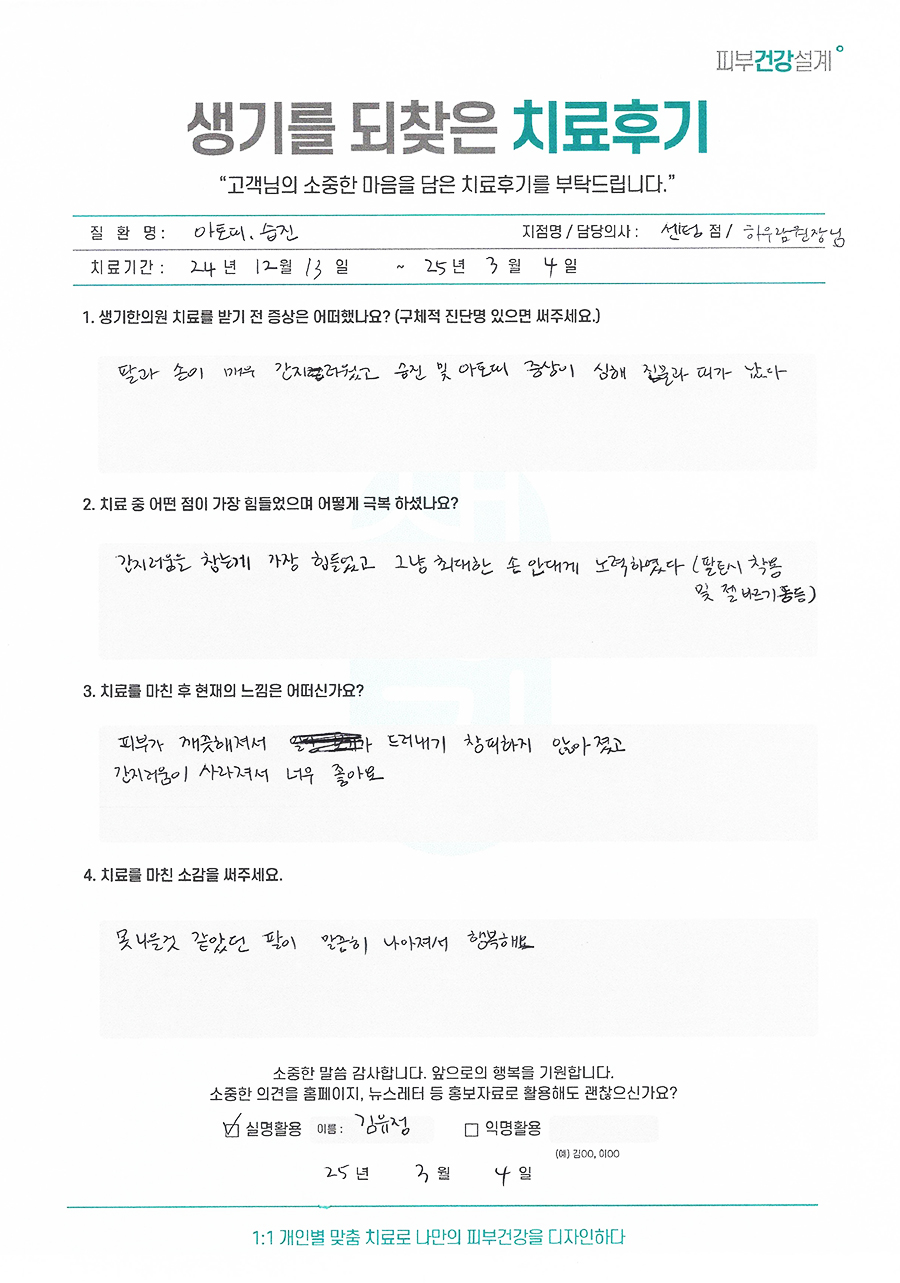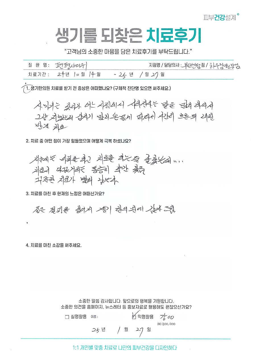 생기한의원과 함께하신 생생한 자필 및 영상 후기를 소개합니다.