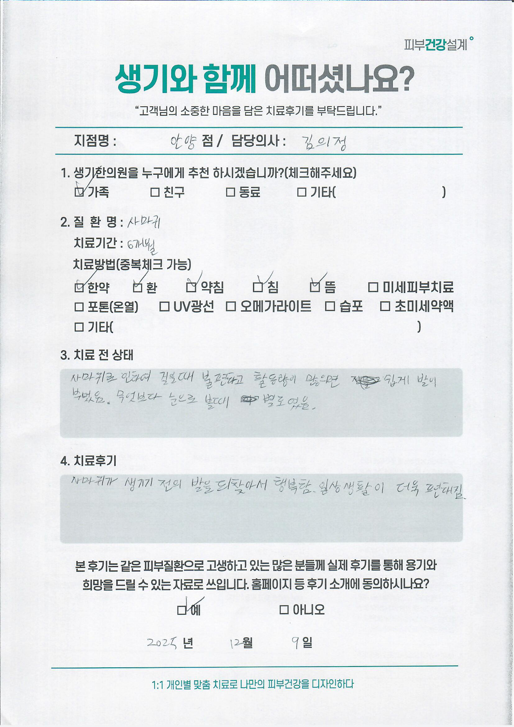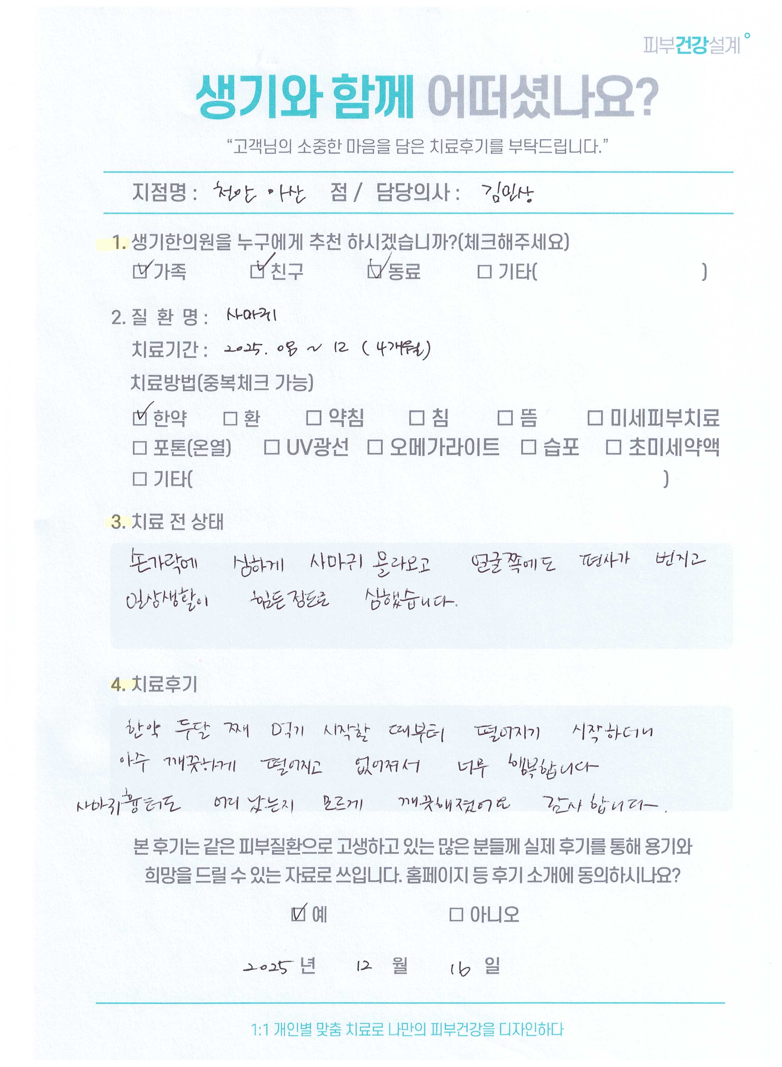 생기한의원과 함께하신 생생한 자필 및 영상 후기를 소개합니다.