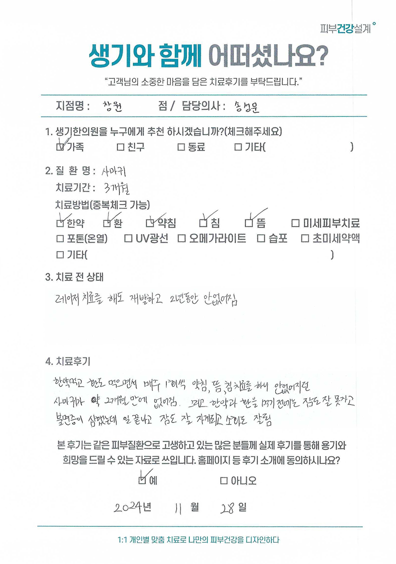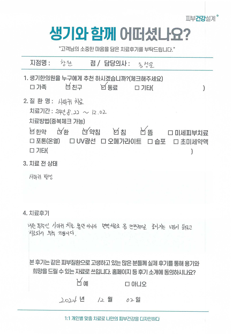 생기한의원과 함께하신 생생한 자필 및 영상 후기를 소개합니다.