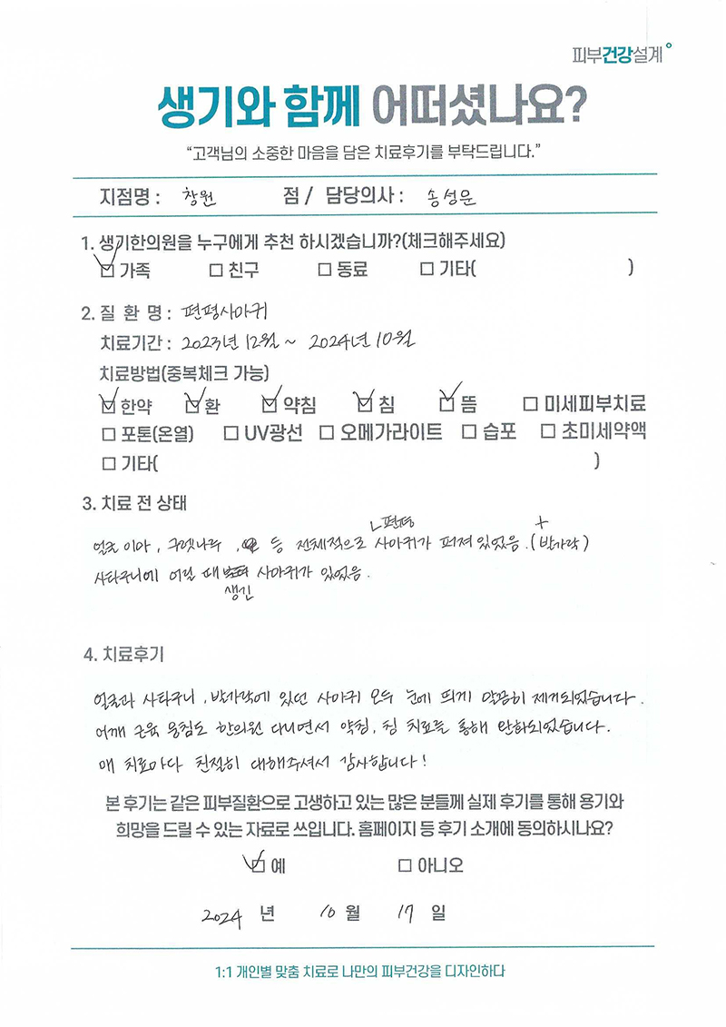 생기한의원과 함께하신 생생한 자필 및 영상 후기를 소개합니다.