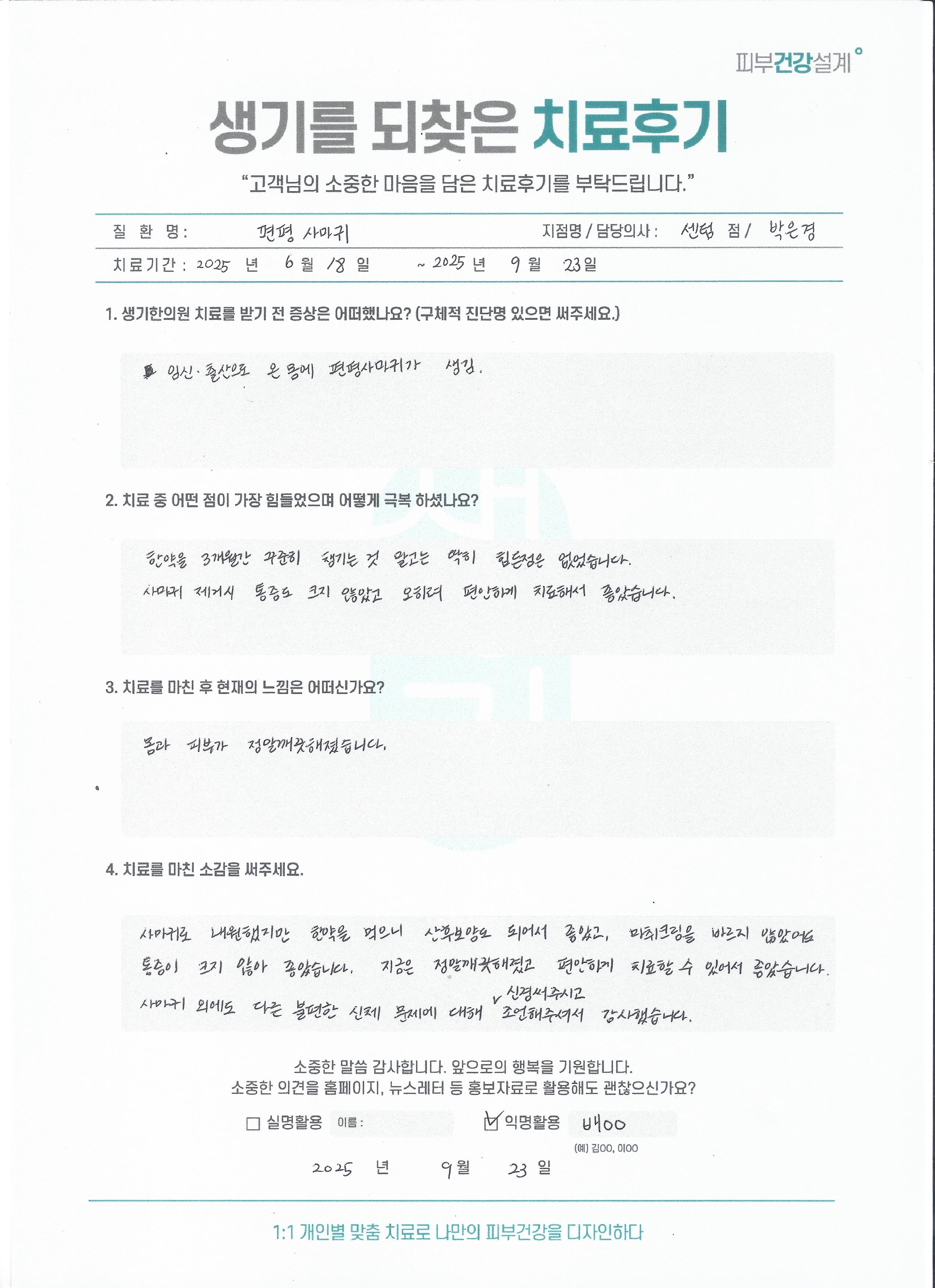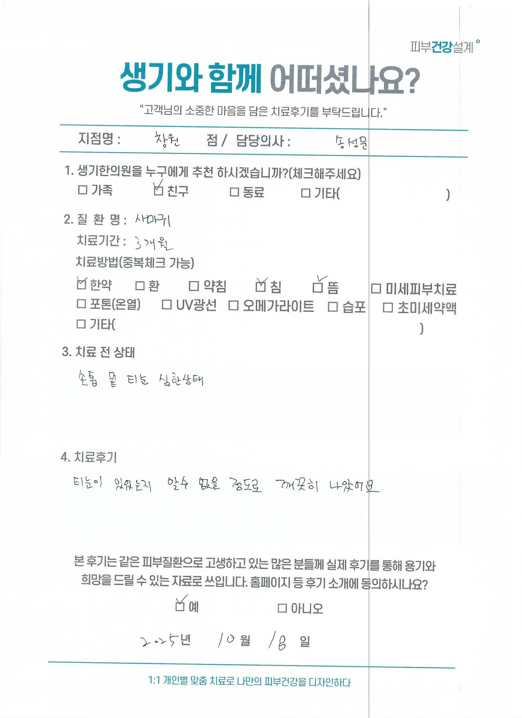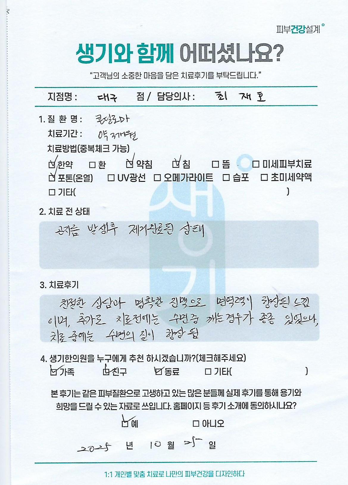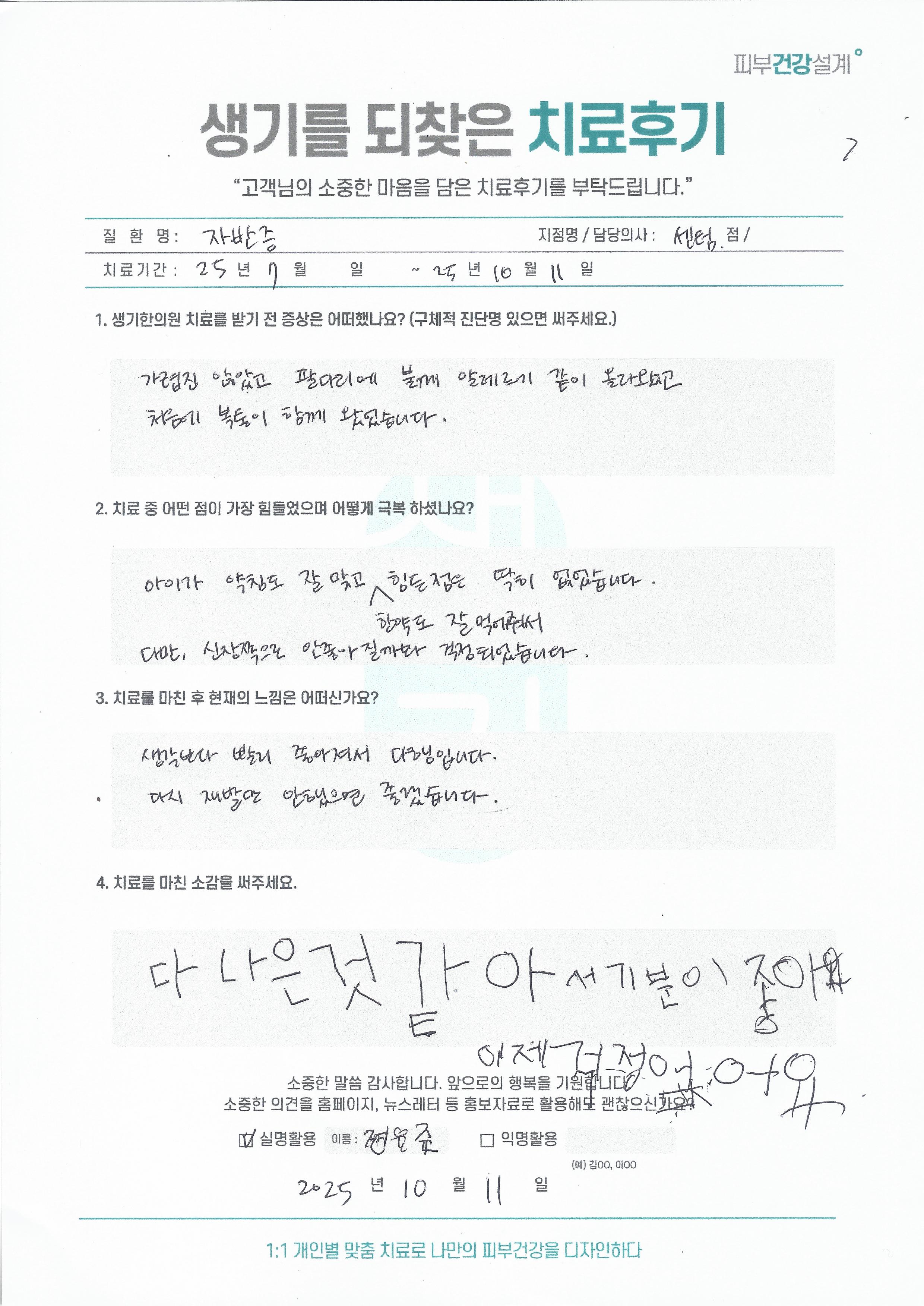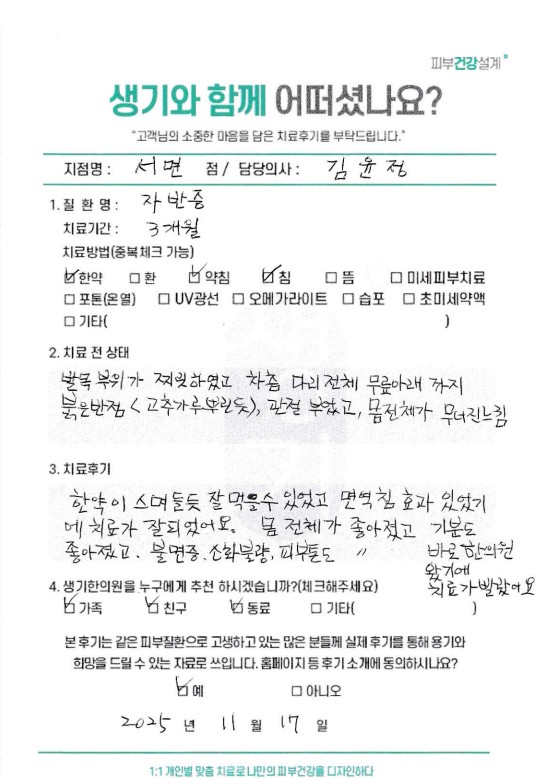 생기한의원과 함께하신 생생한 자필 및 영상 후기를 소개합니다.