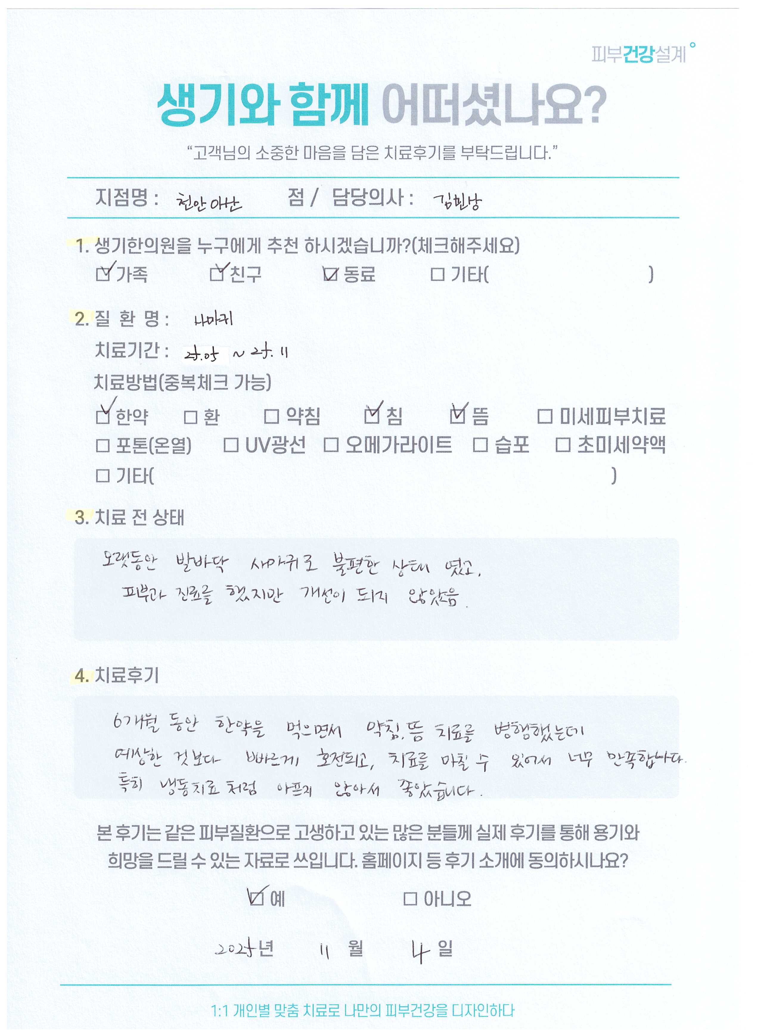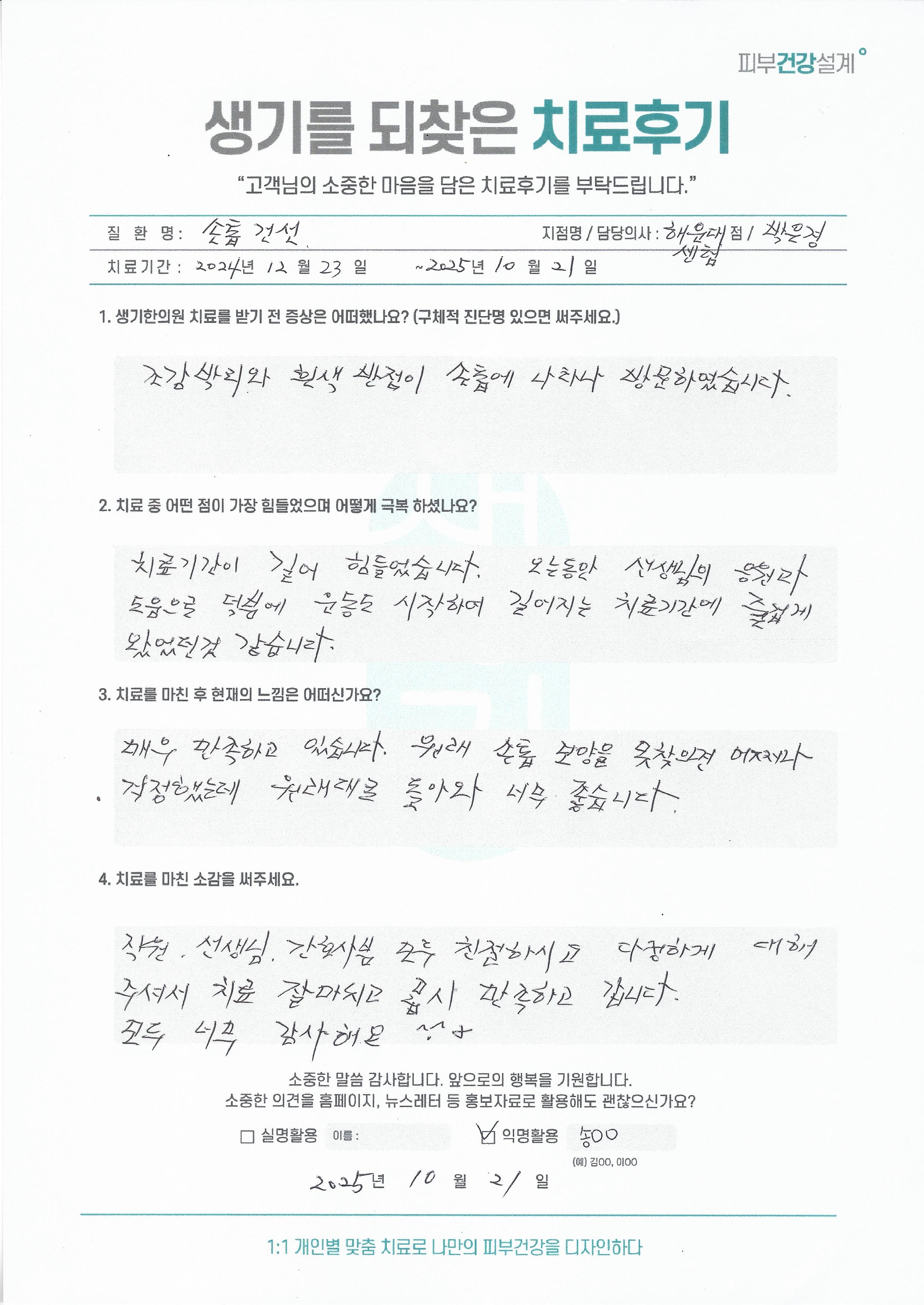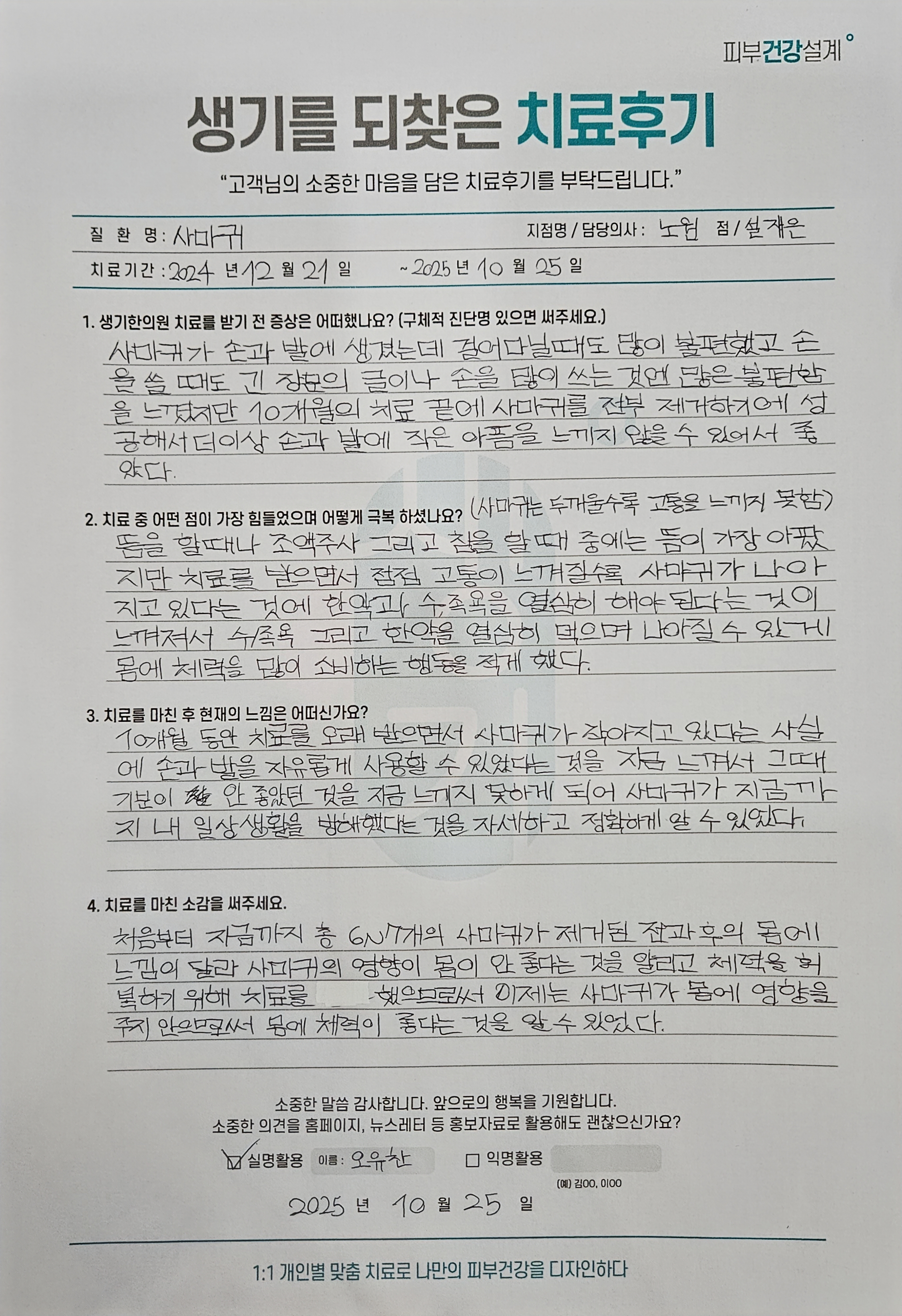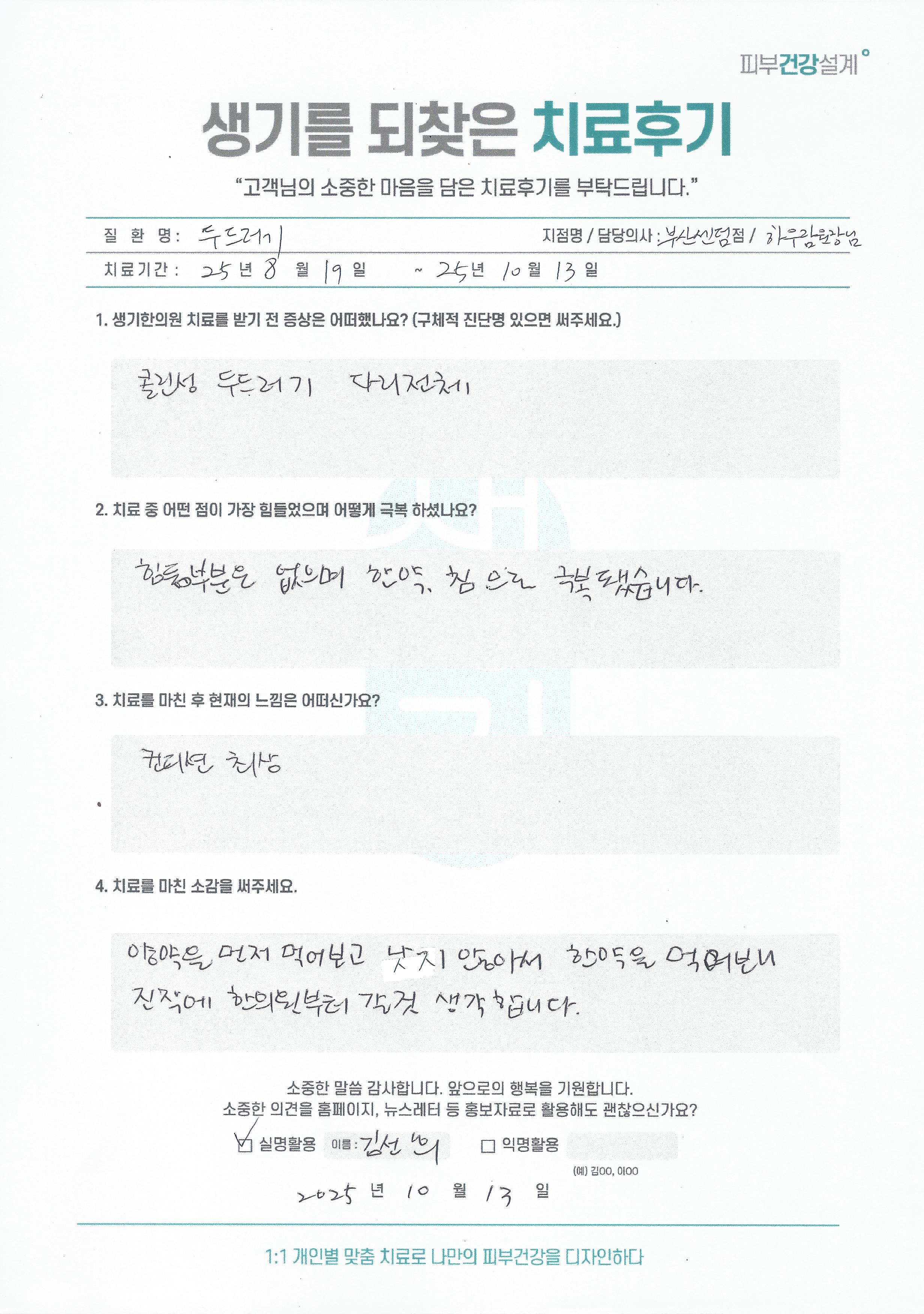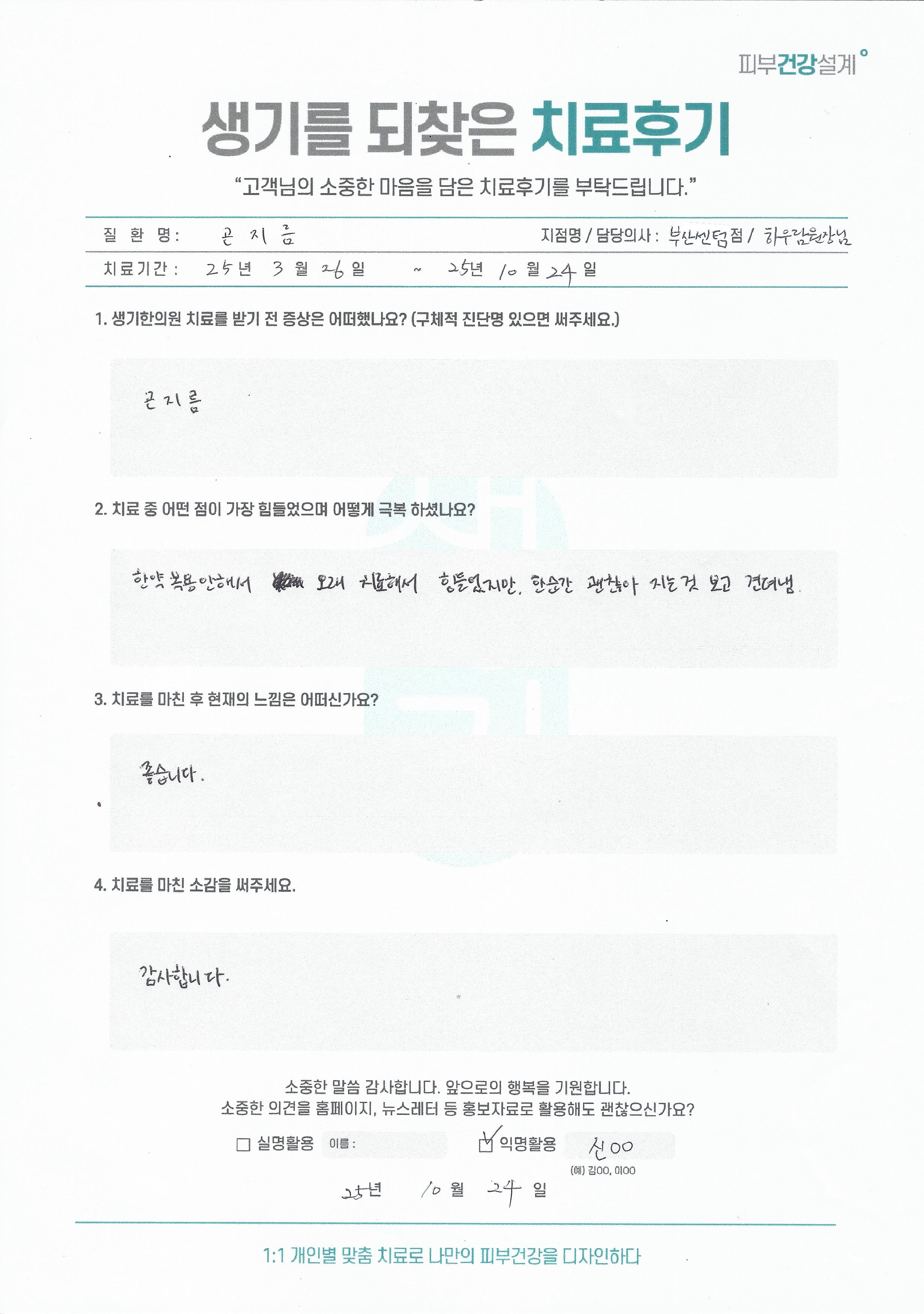생기한의원과 함께하신 생생한 자필 및 영상 후기를 소개합니다.