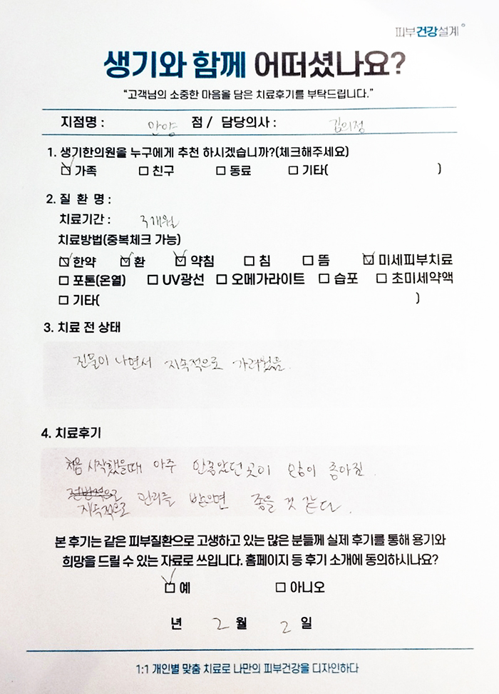 생기한의원과 함께하신 생생한 자필 및 영상 후기를 소개합니다.