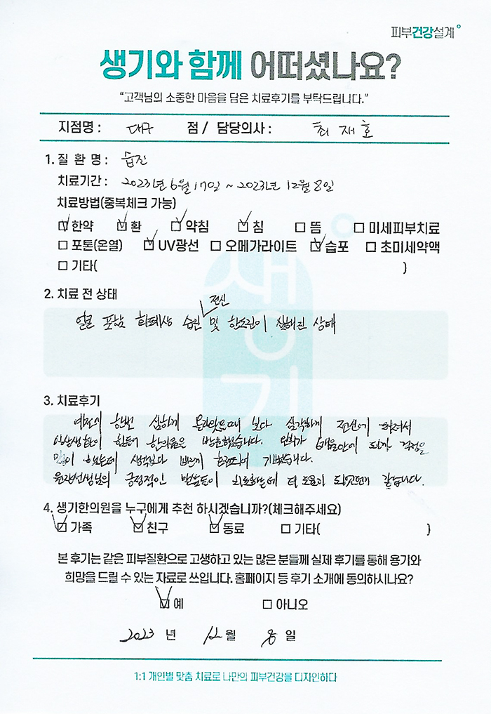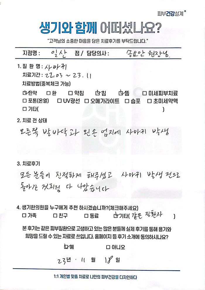 생기한의원과 함께하신 생생한 자필 및 영상 후기를 소개합니다.