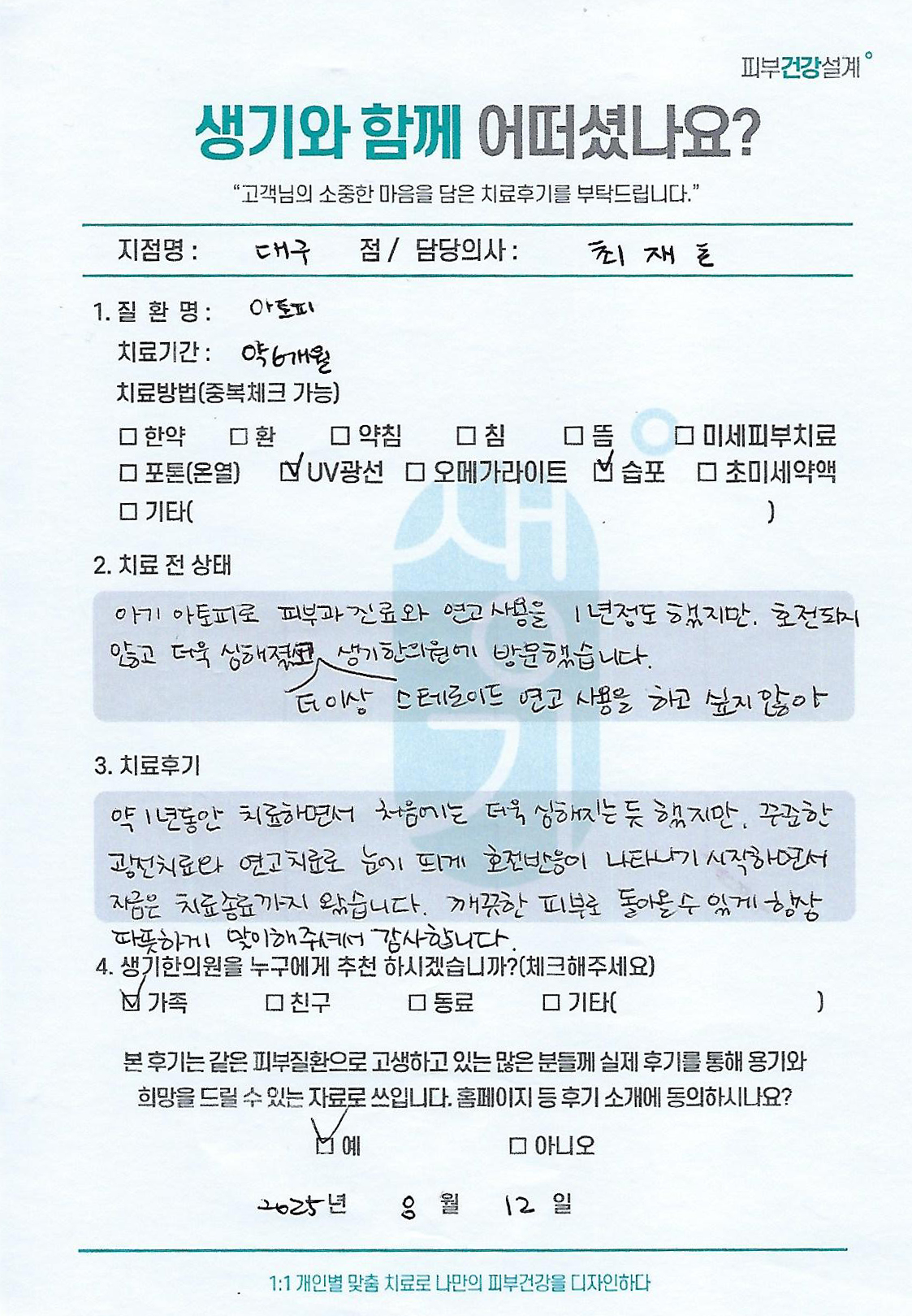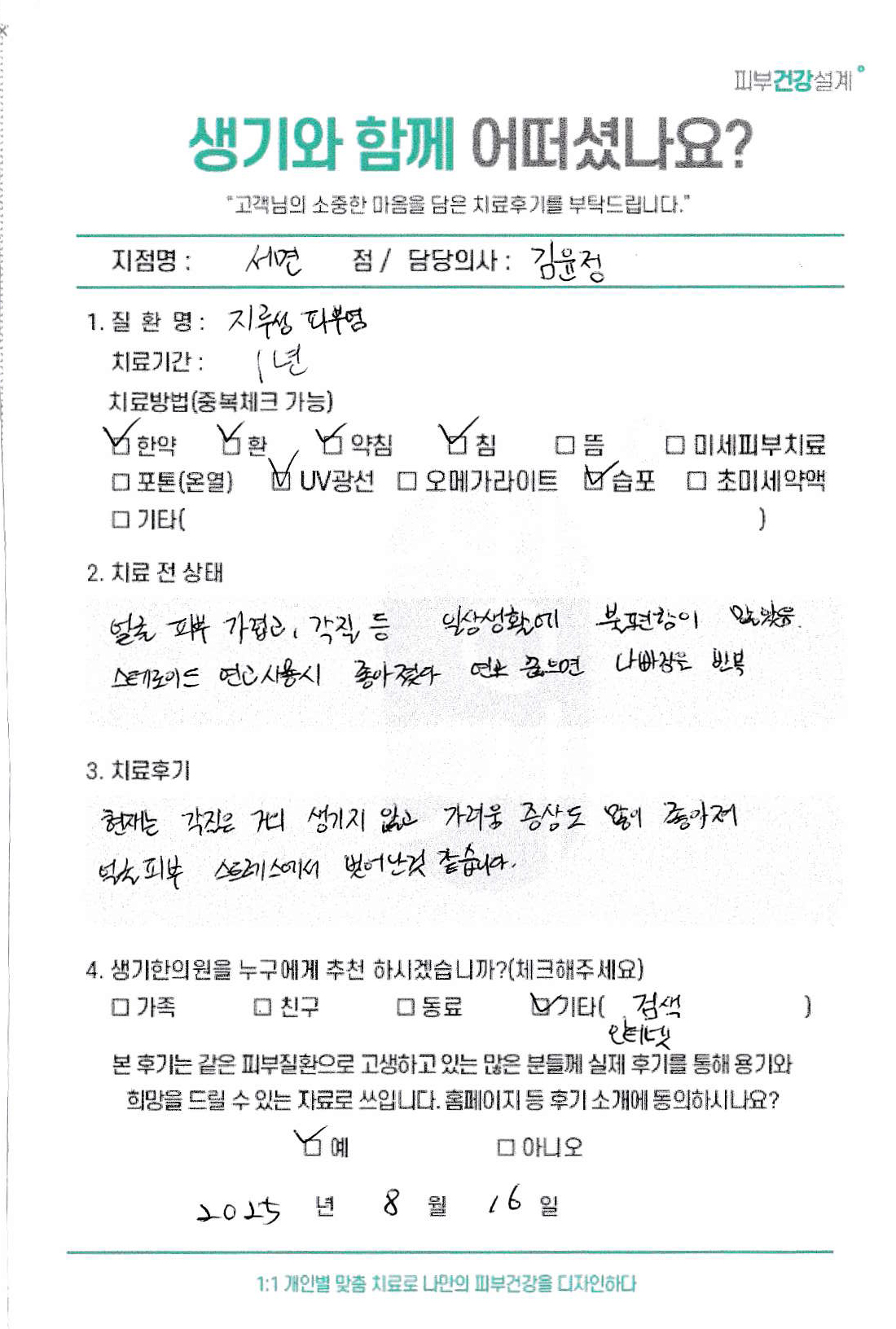 생기한의원과 함께하신 생생한 자필 및 영상 후기를 소개합니다.