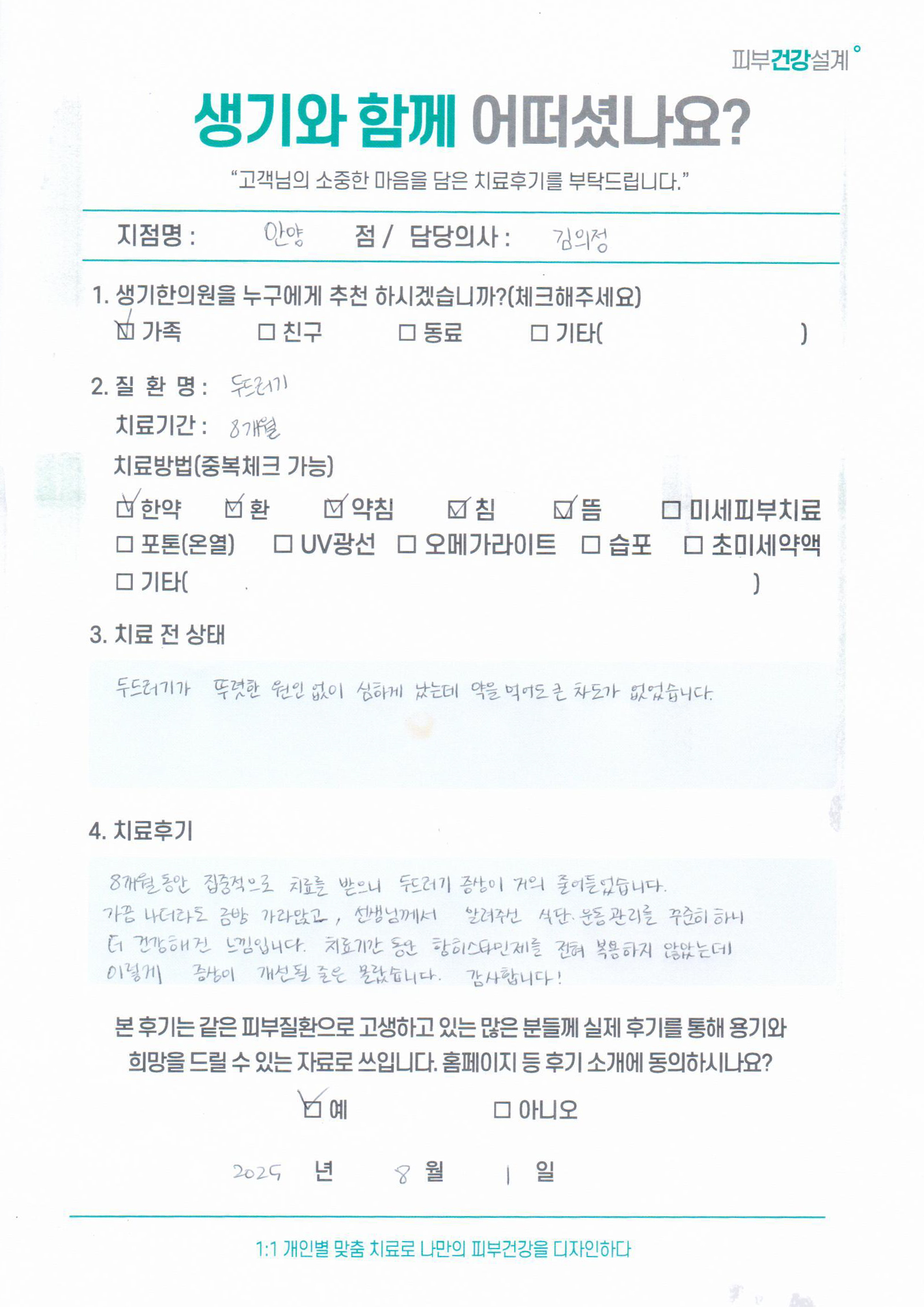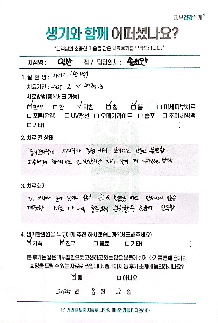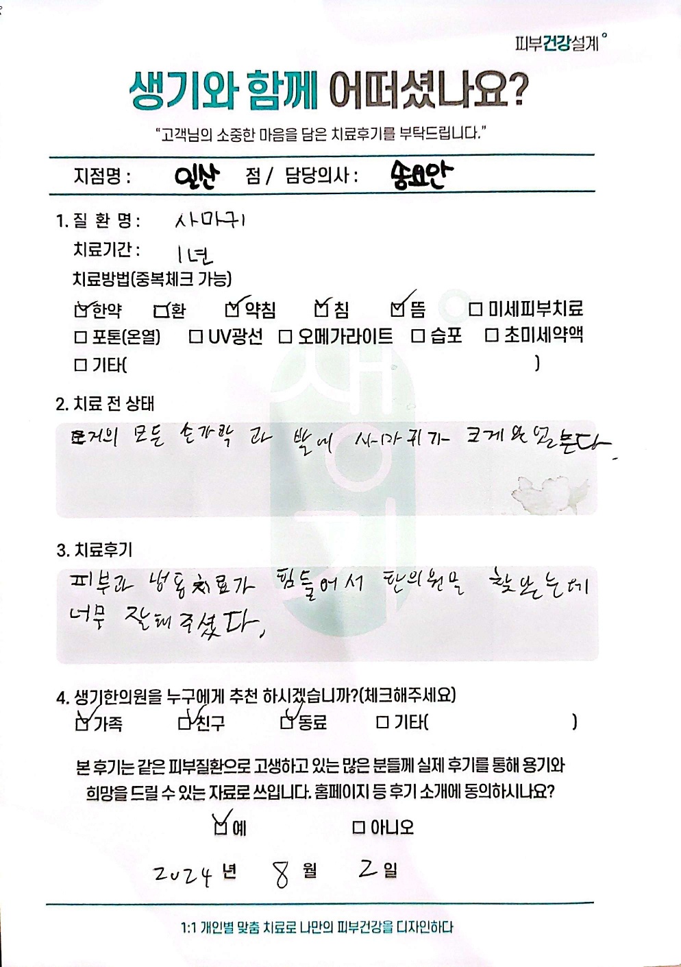 생기한의원과 함께하신 생생한 자필 및 영상 후기를 소개합니다.