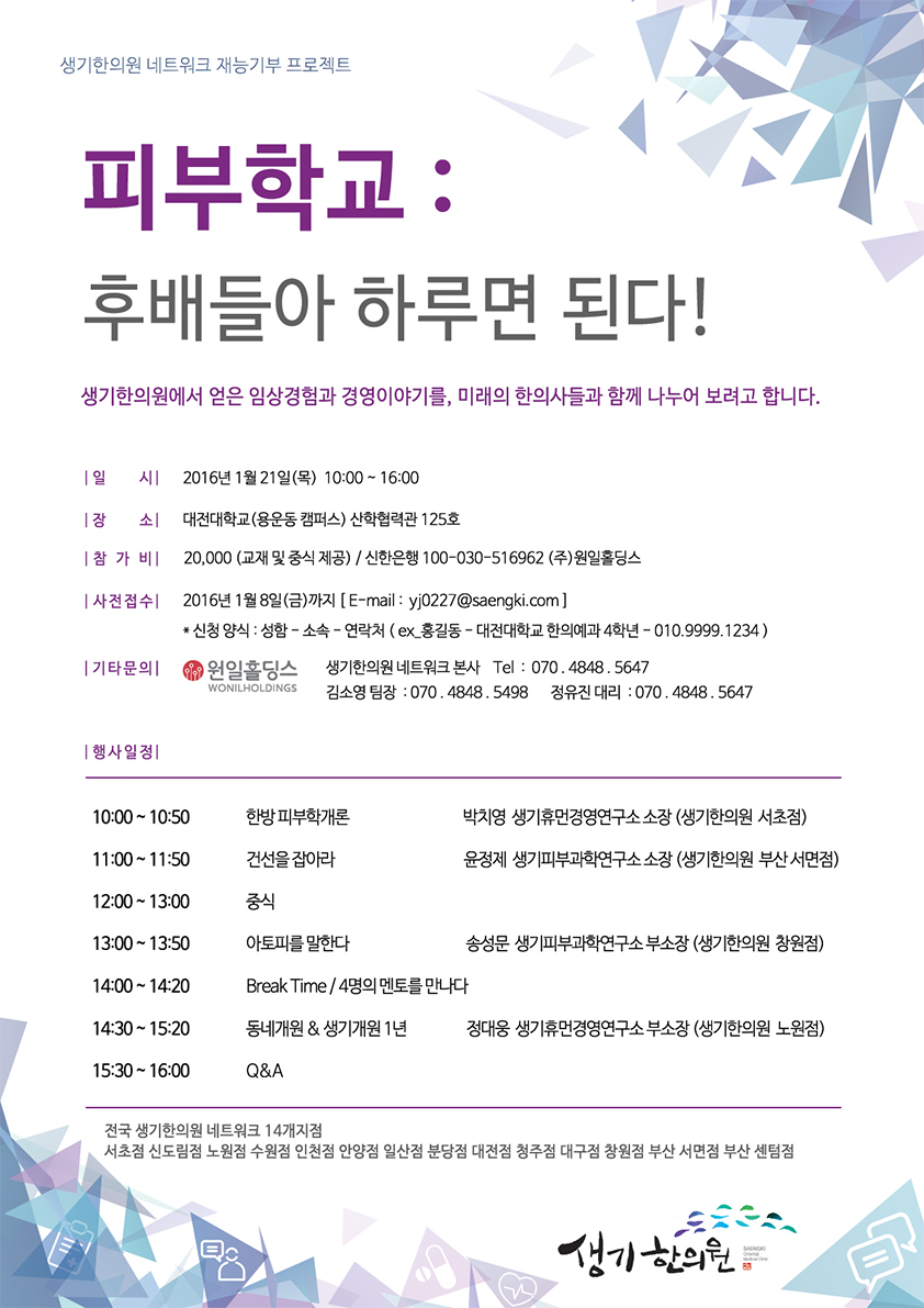 생기한의원 재능기부 프로젝트, 피부학교 : "후..