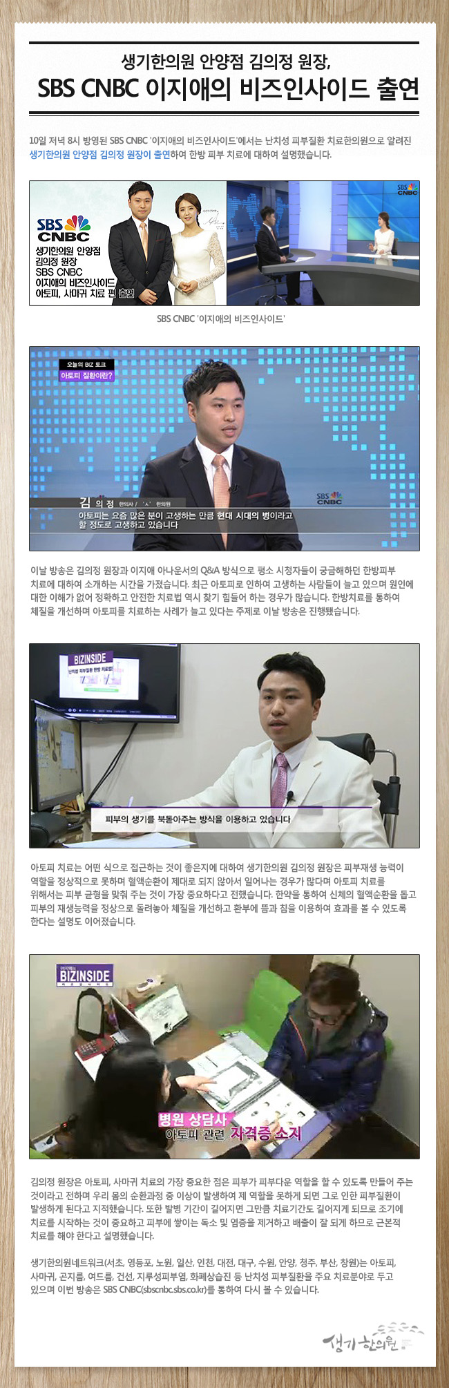 생기한의원 안양점 김의정 원장, 이지애의 비즈인사이드 ‘한방 아토피 치료` 소개