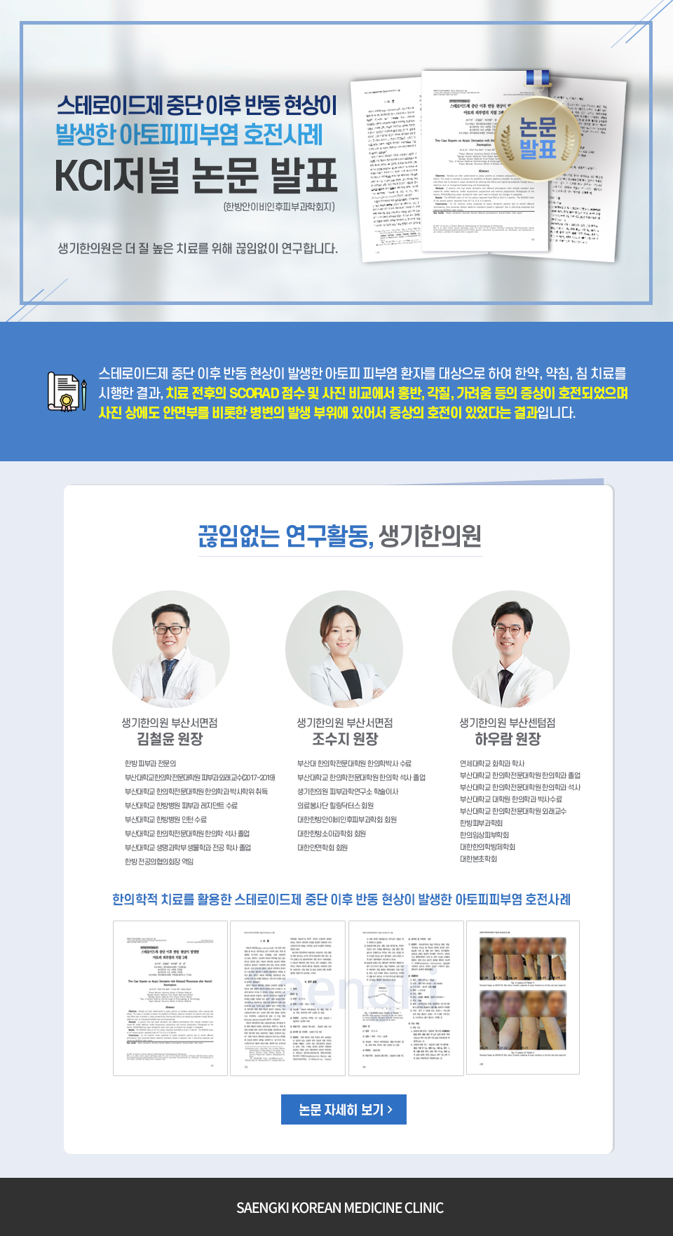 스테로이드제 중단 이후 반동 현상이 발생한 아토피피부염 호전사례 KCI저널 논문발표