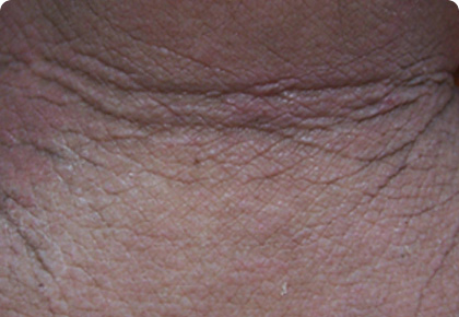 긁는 습관으로 인해 피부 표피가 나무껍질처럼