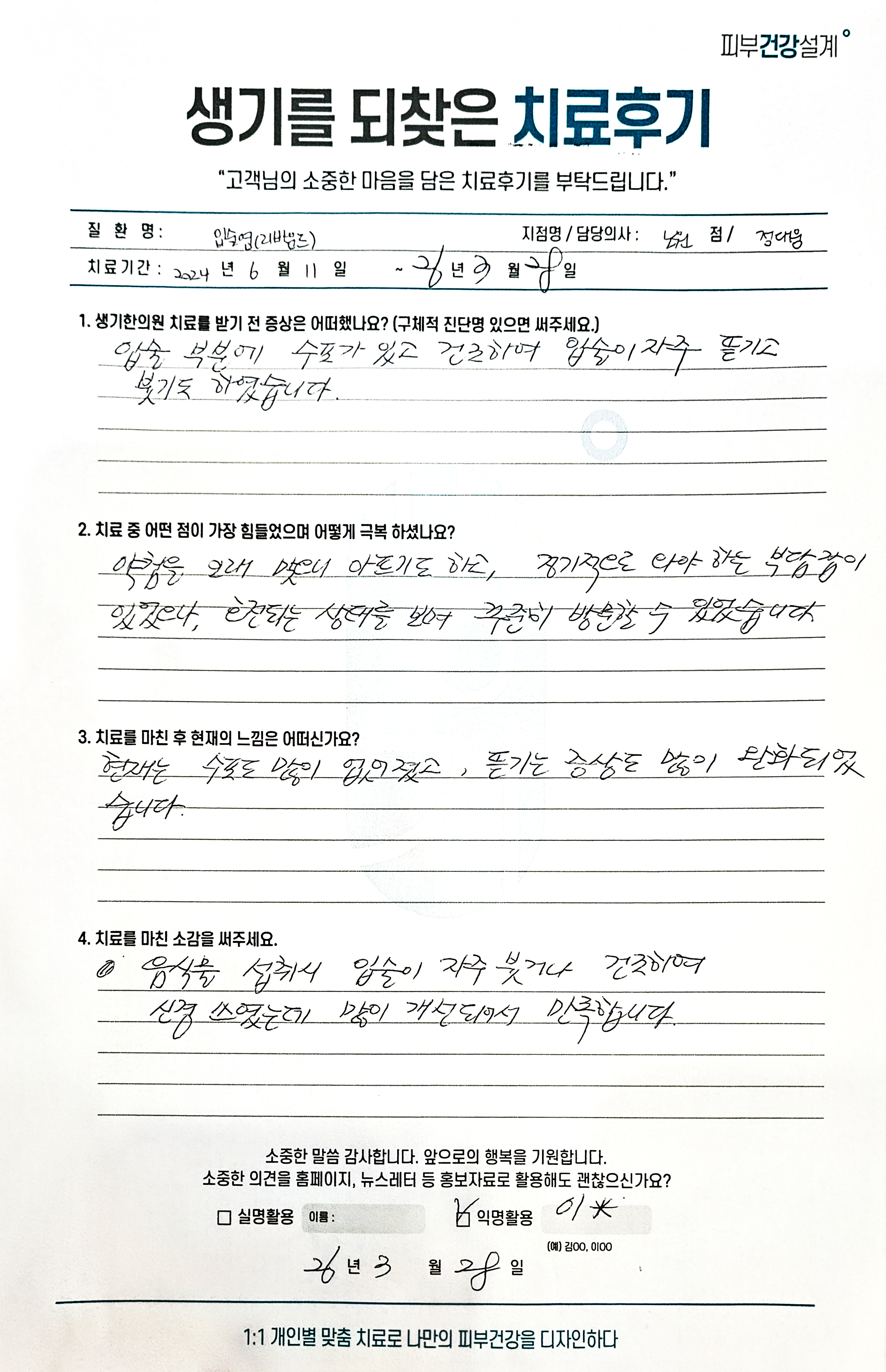 생기한의원과 함께하신 생생한 자필 및 영상 후기를 소개합니다.